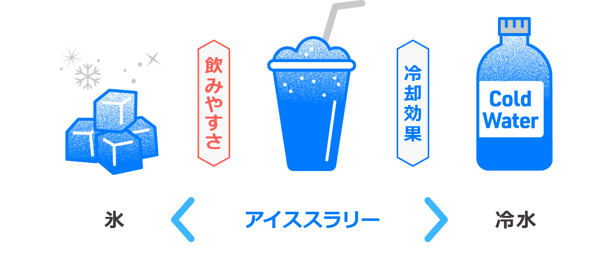 細かい氷と液体が混ざった、完全に凍っていない飲料のことで、飲むことで体を効率よく冷やすことができます。