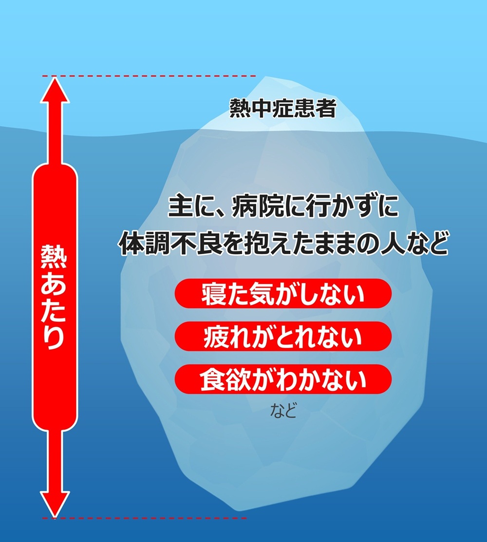 いわば「熱中症」は「熱あたり」という大きな氷山の一角に過ぎないのです。