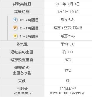 ※厳冬期(非暖房室の室温約7℃、暖房運転設定温度約20℃)の条件を想定して試験を実施したため、通常のエアコン暖房の設定温度より高い温度で実験しています。