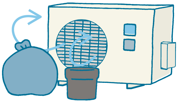 室外機が周辺の空気をしっかり吸い込んで吹き出せるように、室外機周辺には物を置かずに風通しを良くしておきましょう。空気の通りが悪いと、エアコンの効率が下がり、無駄な電気代につながってしまう場合があります。