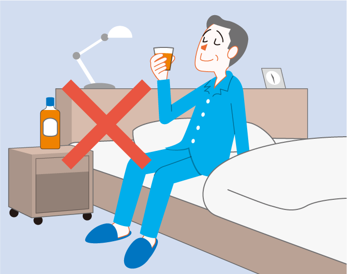入眠は深部体温が下がることで促されます。睡眠の1~2時間前に熱すぎない(38~40℃)お風呂に入って深部体温を高くしておくと、入眠に向けて深部体温が下がりやすくなります。