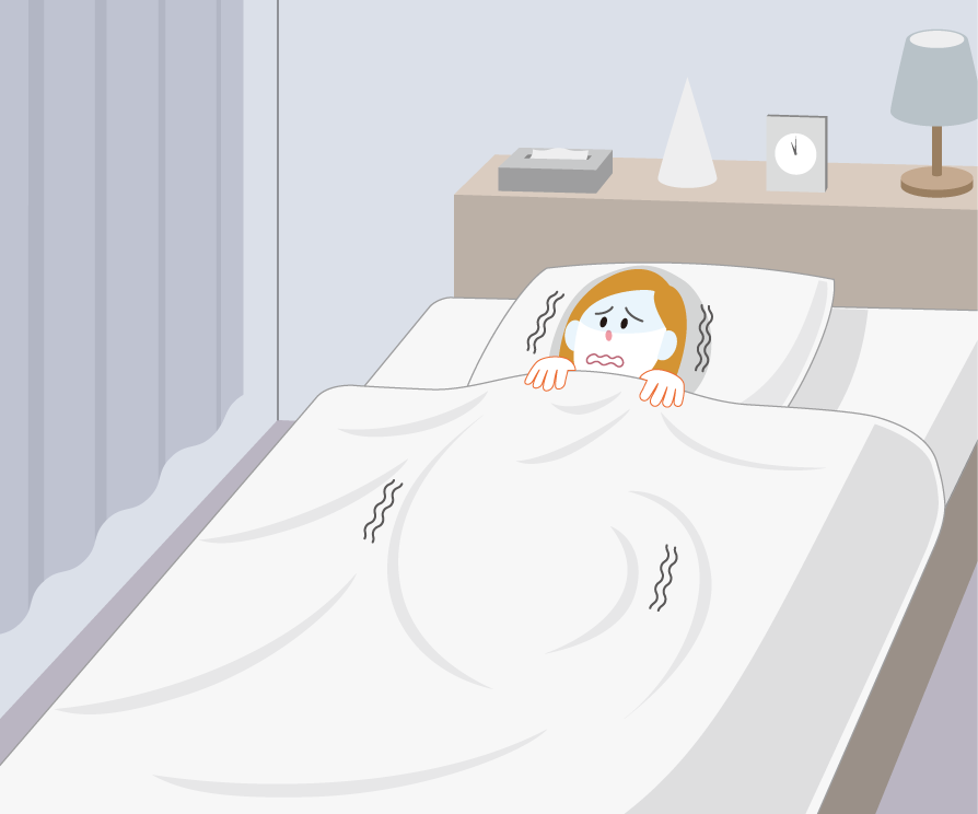 冬の寝室の寒さに伴う末梢血管の収縮を防ぐことで、入眠がスムーズになり、質の高い睡眠につながります。カーテンで断熱したり、事前の暖房時に掛布団を広げておいたりするとさらに効果的です。