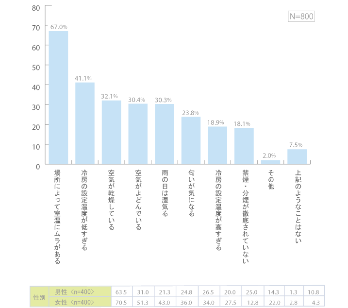 ことが浮き彫りになりました。その理由については、「場所によって室温にムラがある」が67%、・・・ 全体をみる