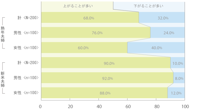ます。「新米夫婦」は「熟年夫婦」以上に「上がることが多い」(90.0%)が多く、・・・