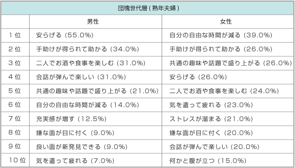 第10回目となるこの調査では、夫の定年退職など、再び二人の共有時間が増えると言われている