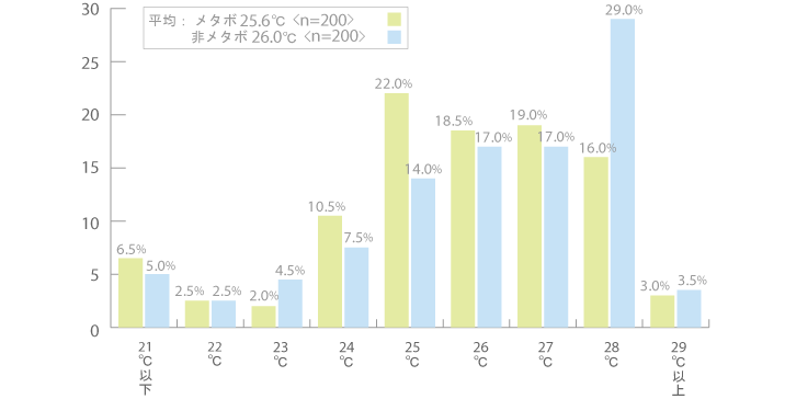でない人は「26℃」(16.0%)などがメタボな人を上回っています。・・・