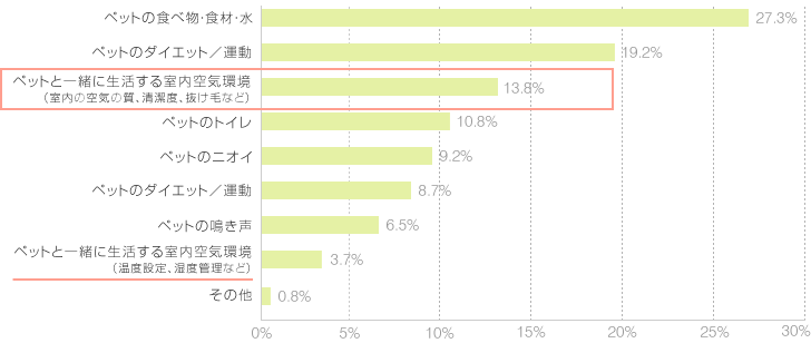 ペットと一緒に生活するようになって、現在気になっていること/関心のあることを聞きました。住まいの空気