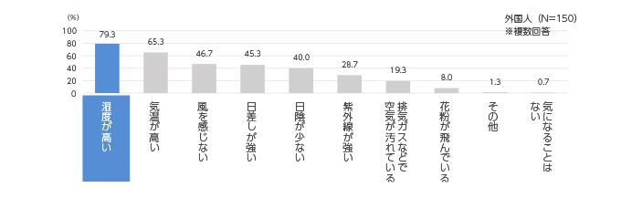 約8割の外国人が屋外スポーツ時(観戦含む)に「空気」で気になるのは「湿度が高い」