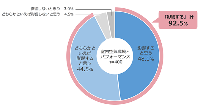室内の空気環境がテレワーク時のパフォーマンスに「影響する」