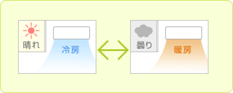 緯度が高く日照時間の長いオーストラリア南部は、晴れると温室効果で部屋が暑くなり冷房が、雲で日光がさえぎられると一転して暖房が必要になります。そのため、この地域のエアコンには冷房←→暖房の自動切換機能が必須となります。