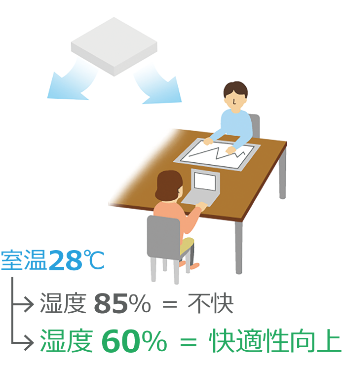 湿度をコントロールできれば、設定温度が高めでも快適な冷房ができて、設定温度が低めでも快適な暖房ができます。