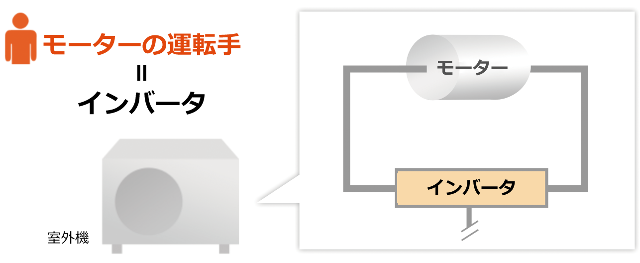 圧縮機を動かすモーターの回転数を高精度にコントロールしている、いわば「モーターの運転手」です。