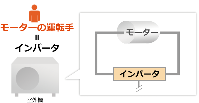 インバータはエアコンやエコキュートの室外機の中にあります。