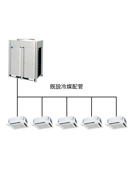 更新専用ビル用マルチエアコン『Ve-up Q』は、既設配管の流用を可能にしたことに加え、適正な冷媒量を自動で充填する「冷媒オートチャージ機能」を搭載したことで、更新時の工期の短縮、工事費の削減を実現。高まるオフィスビル空調の更新需要に応えました。