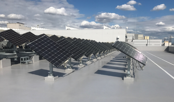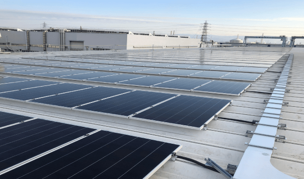 屋上に太陽光発電パネルを設置し、生産活動に必要なエネルギーの一部を補填。