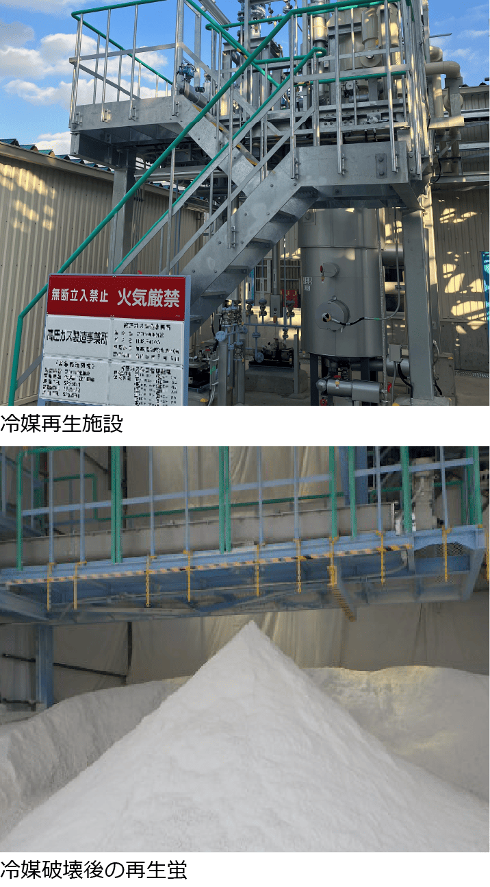 2023年 12 月に淀川製作所にフロン再生施設を新設し、「第一種フロン類再生業者」の許可を取得しました。これにより、ケミカルリサイクルよりも環境負荷の低い、再生冷媒へのマテリアルリサイクルが可能となり、国内の再生冷媒供給能力の向上に寄与します。