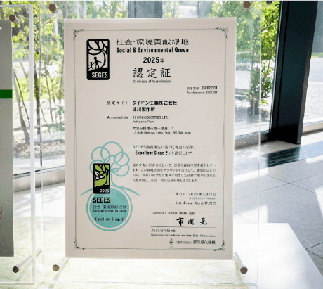 SEGES とは、企業が所有する緑地を通じて社会や環境に貢献する活動や取組みを評価する国内唯一の緑地認証制度であり、様々な大企業の生産・開発拠点や研修施設等が認証取得しています。TIC の森を活用した取組みは、緑が少ない市街地における貴重な緑地空間での「継続的な従業員の自主的活動」・「地域住民との対話」・「学童向けの環境教育」が評価され、SEGESに認定されました。