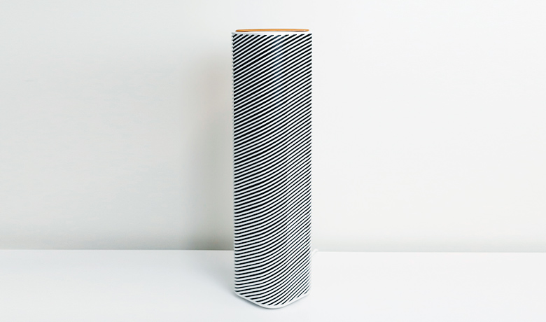 例えば空気砲は空気の塊を運ぶ事ができる技術ですが、その技術を応用して何か製品ができないかという所から、中川くんがデザインしたのがコレですね。実はアロマディフューザーです。これは人に向けてアロマの良い香りのする空気を発射してくれます。ただ発射するだけでなく、人の方向を検知して動きに合わせて「ぽんっ」と空気が出ます。