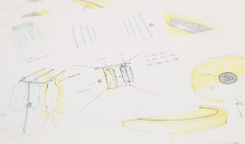 今はとにかく文字だけのコンセプト案を様々な部門の人がイメージを共有しやすいようにデザインし、描き出しています。ベビーカーに乗せる空調や、新しいタイプのリモコンなどアイデアはたくさんあるので。依頼を受けて書くデザイン画がほとんどですが、中には依頼されていないのに、勝手に描いて提案しているものもあります。でも、このデザイン画を見せる事で皆が盛り上がる、その活動が盛り上がるというところに重きを置いているので、難しいですけどとにかくたくさん描いて提案しています。