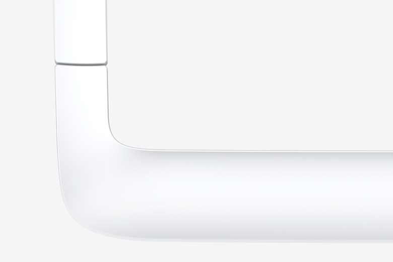 またラウンドパーツの表面は逆Rの形状になっており、フラップを筐体から分断する役割を担っています。運転状態を示す表示部もこのラウンドパーツ内に隠しこむことで、全体の印象をすっきりさせました。