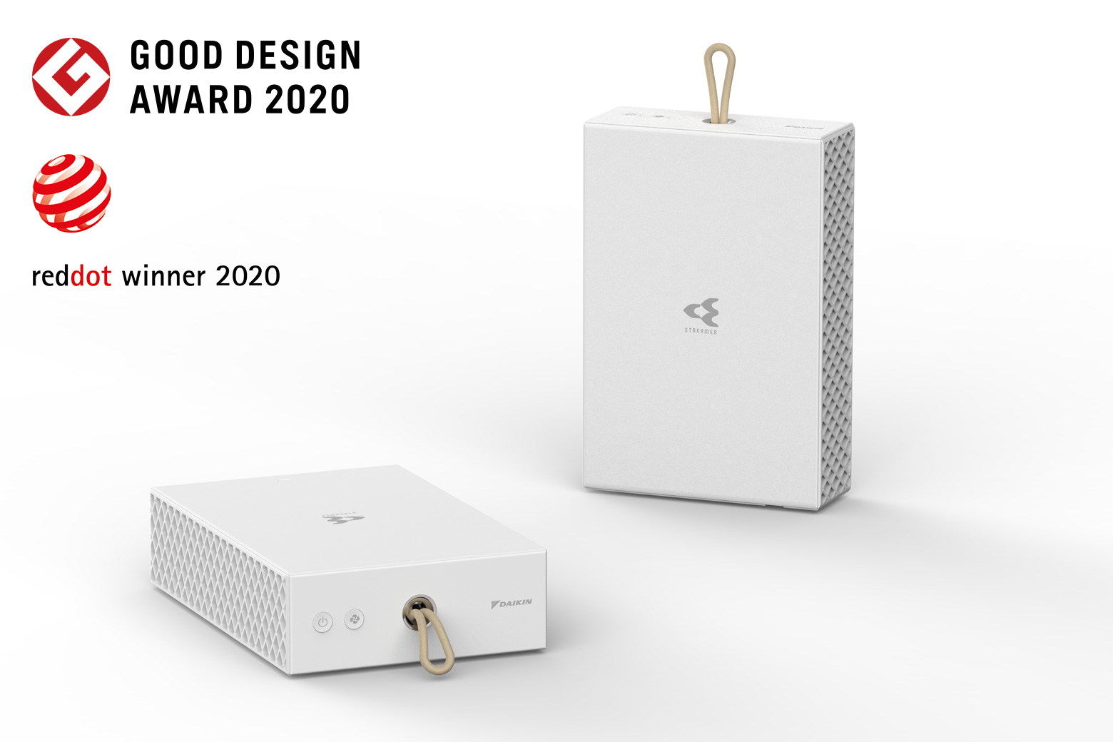 シンプルなスタイリングと端正に作り込まれたディテール。特徴的なルーバー形状も見応えがあり、コンパクトながら購入したユーザーに満足感をもたらすデザイン。クローゼットやシューズクロークなどの環境までも快適にするという、新しい試みから生まれた消臭機は、同様に新しい取り組みとしてスタートしている狭小空間のためのポータブルエアコンとデザイン言語を合わせ、世界観を作り始めている。空調機器の老舗企業が、これまで培ってきた技術を礎に、あらゆる空調に目を向け、新たなチャレンジを始めた。その企業姿勢も高く評価した。