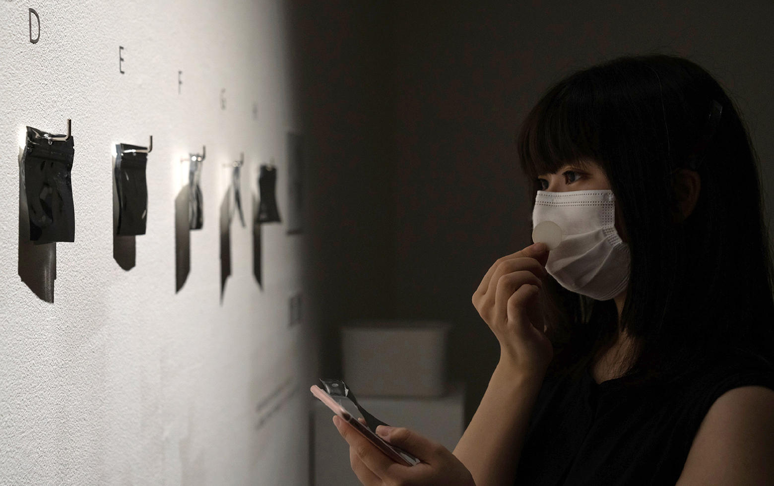 この展覧会「記憶の珍味」は、「わたし自身をあじわう体験」として、自分の記憶と結びつく匂いをひとつ選んであじわう、という体験型の作品です。当初は実際に食べてあじわう体験でしたが、再開後は感染症対策によってそれができなくなってしまいました。そこで、マスクがないとあじわえない体験に作品を変更しました。いくつかの森の匂いから自分が選んだ匂いをマスクに付けてもらう。そうすると呼吸するたびにマスクの内側に森ができあがる。ギャラリーを出て銀座の街を歩いていても、家に帰るために満員電車に乗っても、マスクをしている間は森を感じるのです。それは自分だけの記憶の中にある森。そういう意味では、私はマスクの中の空気をつくったのかもしれませんね。森の空気を運んで、銀座に、マスクの内側に、記憶の中に、森をつくり出したのです。