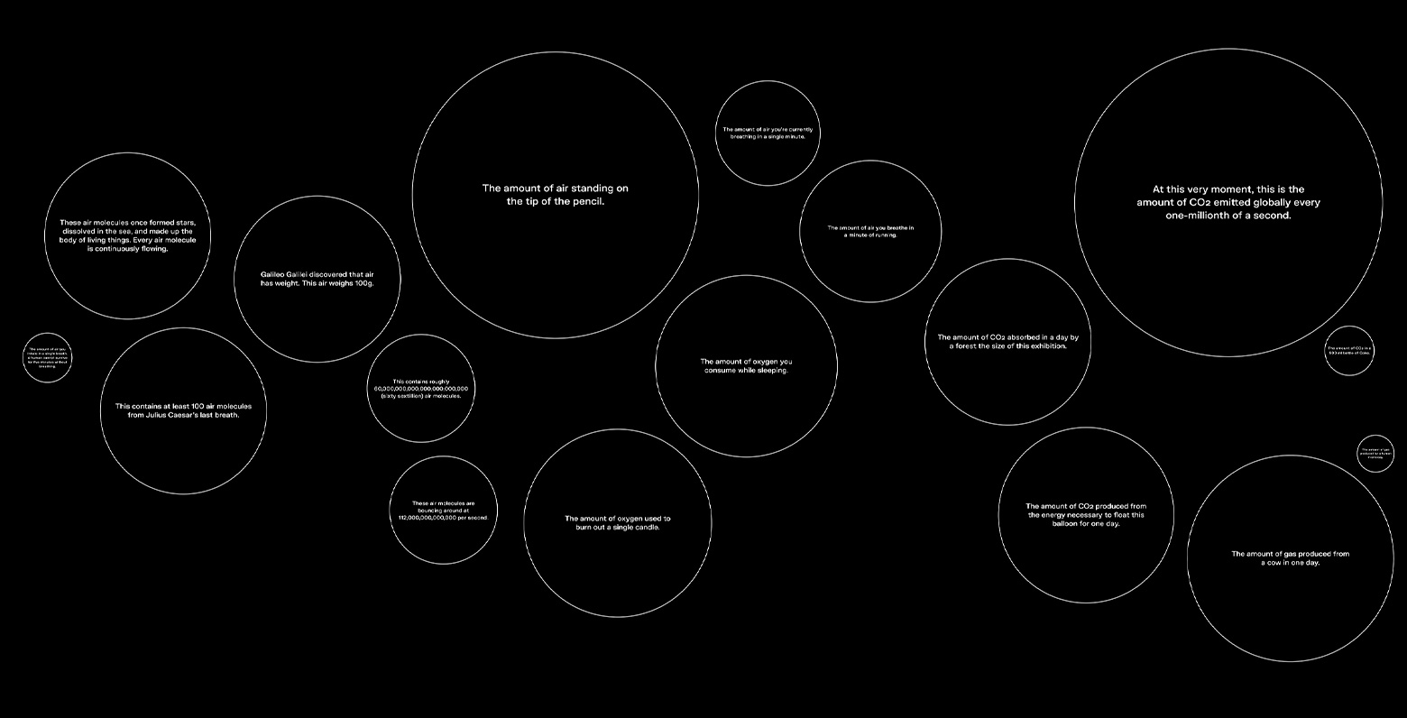 ゴールが空気に興味を持ってもらうことなら、入り口は、まず展示会場に入ってもらうこと。中に入って展示を体感して、どんどん興味を持ってもらって、空気のいろいろな見方を知る。会場を出た後に、世界の見方が少し変わるようなものを作りたかったのです。目に見えない空気を意識してもらうことが、この企画の一番のコアになっています。