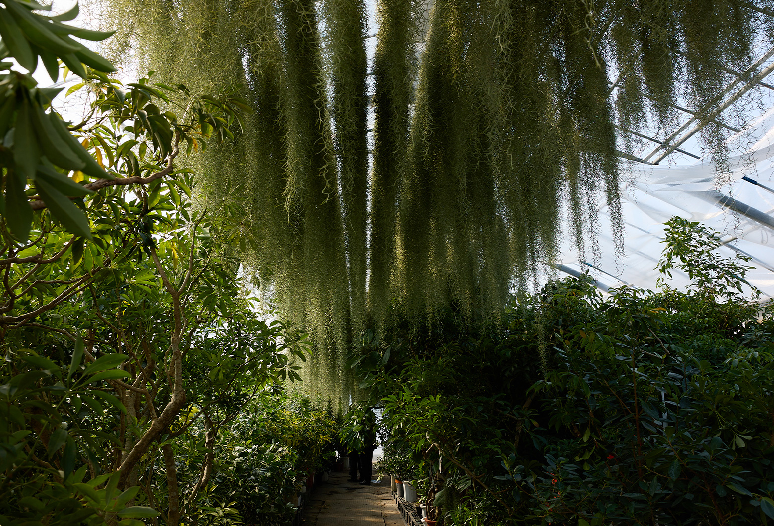 人間にとって快適な状態というのは植物にとっても同じで、温度だけでなく、湿度も大きな要素になります。暑い国の熱帯植物の中には、湿度さえあれば土から水を吸わなくてもいいということで、木の上で暮らすことを決めた植物たちもいます。わたしたちの身近で売られているエアプランツがその最たる例です。大体は木にぶら下がっていて根を生やさず、空気中の水分を吸収して暮らしている。着生植物もそうです。他の木にペタッとまとわりついて暮らしている植物で、一番メジャーなのがシダ植物ですね。雨が降って潤った土から水分を吸い上げているわけではなく、空気中の湿度で育っている。つまり、暑い国の植物は湿度ありきで暮らしていると言っても過言ではないということです。