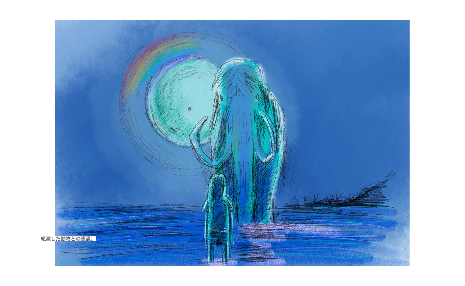 今回の作品には不思議な生きものがいっぱい出てきます。中には絶滅してもうこの世にはいない動物や、おばけや幽霊みたいなものもたくさん出てきます。そういうこの世のものではない存在は、日本的なアニミズムの思想を背景として、創造を通したある種のエデュケーションとして機能してきました。例えば、ものを大切に使うとか、夜は出歩かないようにするといった概念を教えるために、子どもたちを怖い話でちょっと怖がらせたりする。そういう風に、この世にいないからこそ、ふだんとは違う気持ちが芽生えて、それによって何かを伝えられたらいいなと思っていました。