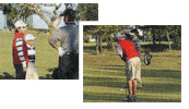 (左画像)米軍から普及した沖縄のゴルフコースで練習する沖縄のジュニア選手たち。楽しみながら自然に基本を身につけていきます。