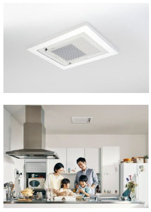 本製品は、従来エアコンが設置されていなかった洗面所やキッチン、廊下などの非居室の小空間にも設置できる、業界最小サイズ※1の小空間マルチカセット形エアコンです。夏場の調理中のキッチンや、化粧する際の洗面所、冬場の廊下など、暑さや寒さを感じやすい空間の快適性を向上します。また、近年、高齢者が冬場の入浴後に寒い洗面所に出て急激に体温が下がり、ヒートショックで倒れてしまうという事故などが増えており、課題となっていた住宅内の温度差を解消します。住宅内の温度のバリアフリーと省エネ性を両立しながら、多様化するライフスタイルに応じて、住空間を個性豊かに変える新しい発想のエアコンです。