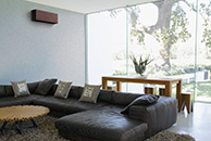 室内機の横幅は国内の住環境に適した半間に納まる798mmにしながらも、室内機の厚みを業界最薄の185mmに抑えました。また、形状は極力シンプルに、さらに室内機の両側面を内側に絞り込むことで、圧迫感の軽減を追求しました。さらに、エアコン運転時に正面パネルや風向フラップが動いても、機能性を犠牲にすることなく美しさを保つ構造を新たに採用しました。