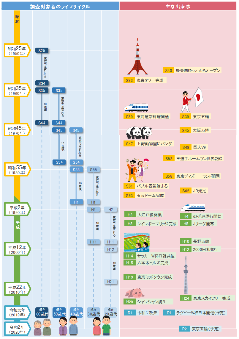 | 調査対象 | 東京生まれ・東京育ちの男女