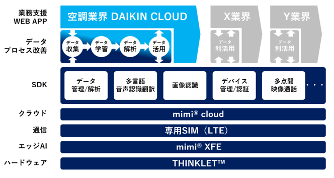 『THINKLETTM』は、(1)デバイス上でのデータ処理技術、(2)クラウド上でのデータ処理技術、(3)音声や画像データ処理技術、(4)ディープラーニングによるデータ学習・解析技術など、フェアリーデバイセズがこれまで培ってきた様々な独自技術を、統合的に活用しています。これにより、これまでIT化が困難だった屋外の騒音環境下での業務や、Wi-Fi通信が困難な環境での業務など、あらゆる現場での高品質の業務データ処理が可能となりました。