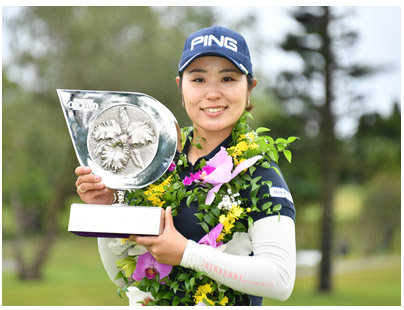 「昨年は全米女子オープンでトップ5に入れたことは良かったのですが、そこから成績が出ず不完全燃焼な1年でした。私にとってダイキンオーキッドレディスは、メジャーに匹敵するくらい大事な試合です。プロを目指すきっかけとなった試合ですし、プロになる前から絶対に勝ちたいと思っていたので、昨年優勝できて、本当に嬉しかったです。15年ぶりの地元沖縄勢の優勝ということで本当に盛り上がりましたし、その盛り上がりを今年も続ける為にも連覇したいです。今シーズンの目標は、メジャーを含む年間3勝を目指します」