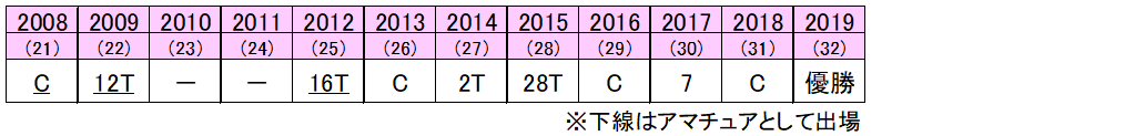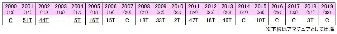 8年連続9回目の出場 ベストフィニッシュ 2位タイ