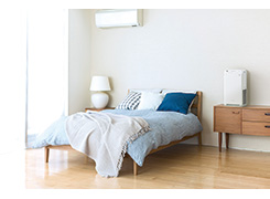 近年、空気清浄機の世帯当たりの所有台数は増加し、リビングルームや寝室、書斎、子ども部屋など様々な部屋で使われることが一般的となっています。空気清浄機に求められる機能のうち、特に加湿へのニーズは継続して高く、家庭用空気清浄機の業界出荷台数のうち8割以上が加湿のできる機種となっています。また、最近では、空気質への意識の高まりから、住宅のほか、幼稚園や保育園、オフィスや飲食店といった商業空間へも空気清浄機が積極的に導入されています。