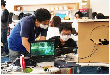 2日間における白熱した議論やプロトタイプ作成の作業を経て、最終発表では、「足元から心地よく感じる温度や香りの風を送り、利用者をリラックスさせる製品」や、「離れた場所でも映像に加えて温湿度や振動などを共有し空間内に再現するサービス」など、学生ならではの斬新なアイデアが披露されました。また、それらのアイデアを実際のハードウェアやアプリケーションを用いて実演することで、各チームともに製品・サービスの利用シーンを具体的にイメージできる発表となりました。