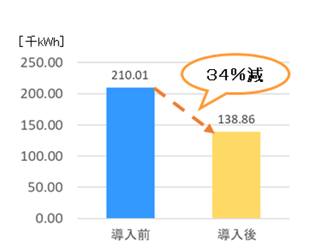 空調設備については、使用機器の圧縮機と制御基板を最新のものに入れ替える『レトロフィット・メンテナンスプラン』を採用し、省施工ながらも経年劣化による不具合の解消と省エネを実現しました。更に当社の遠隔監視による運転データの分析で、季節ごとの省エネスケジュールを設定し、空調設備の消費電力量を約34%削減しました。職員による操作や設備運営の負担が削減されたことで、運営コストの削減・担当職員の他業務へのシフトが可能になり、人員不足の解消と省エネ施策の定着にもつながりました。