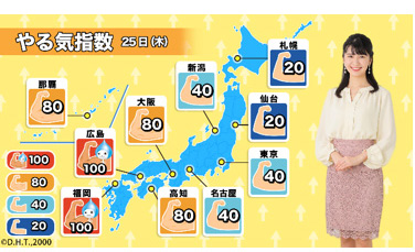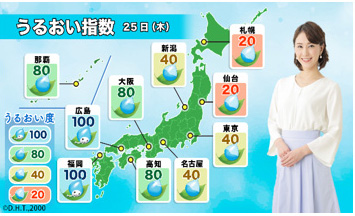 「空気予報」は、気温や湿度などの気象要素から算出するオリジナルの指数「やる気指数」「うるおい指数」を用い、勉強や仕事、恋愛がはかどる“空気”を予報するものです。「やる気指数」では「明日はやる気指数が100だから、新しいことにチャレンジしてみよう!」「明日はやる気指数が低いから、短時間で効率よく勉強しよう」など、「うるおい指数」では「明日はうるおい指数が高いから、お肌も髪も潤って誰かに見せたくなりそう」「うるおい指数が低いエリアでは、保湿をしっかりしてね」など、日々の生活の様々な場面を空気の面から解説、応援します。