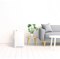 専用のスマートフォンアプリ※9を使えば、外出先からの遠隔操作やお部屋の空気の見える化ができます。今回、新たに当社製ルームエアコンとの連動運転が可能になりました(換気連動運転、室温連動運転、加湿連動運転)※10。換気機能付きの当社製ルームエアコンであれば、換気運転と同時に空気清浄機が運転開始となり、お部屋の形状により発生する空気のよどみを解消します。
