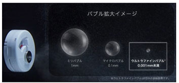お風呂をさらに快適にするアイテムとして、バブル機能に注目が集まっています。ダイキンのエコキュートなら、簡単な施工で取り付けられる「ウルトラファインバブルアダプター」により、バブルのなかでも極めて細かい0.001ミリ未満の「ウルトラファインバブル」を発生させる「ウルトラファインバブル入浴」が楽しめます。微細な泡が全身を包み込むことで、身体が芯から温まり入浴後も湯冷めしにくくなる、角質層にまで水分が浸透し肌にうるおい感が出る、皮膚のしわなど細かいところまでやさしくすっきり洗いあげる、といった効果が期待できます。「ウルトラファインバブル」の発生量が業界トップであることも特長です。※10