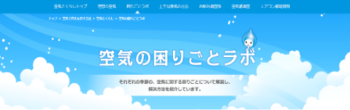 ダイキン工業ホームページ内「空気の困りごとラボ」では、「上手なエアコンのお掃除」や「花粉対策」のほか、空気に関するさまざまな困りごとの解決法、対処法をご紹介しています。