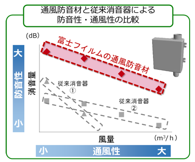 富士フイルムの通風防音材は防音性と通風性を両立。