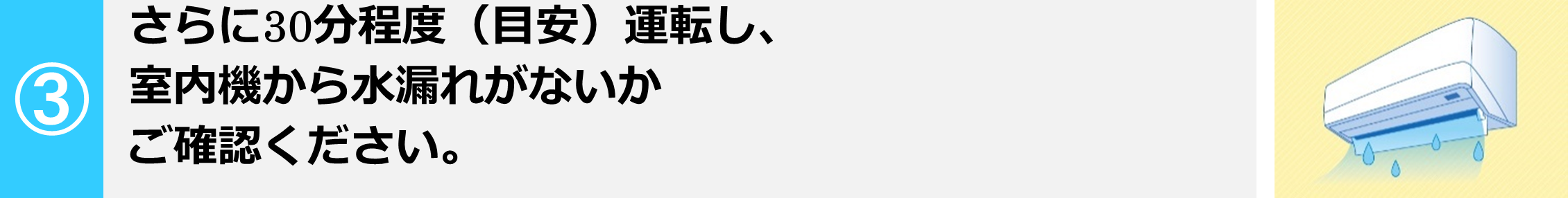 「30分も待っていられない」という場合には、切タイマーを有効活用してください。その場を離れる場合は、万が一の水漏れに備え、エアコンの下には物を置かないようにしましょう。