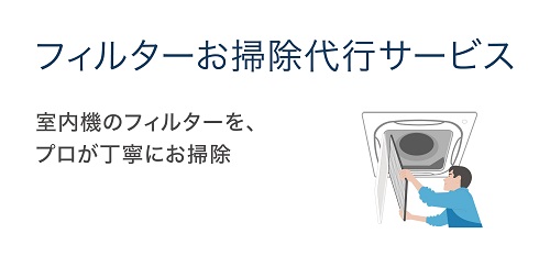 室内機に付属したフィルターが目詰まりした場合、通風路の空気抵抗が上がり、消費電力の増加につながります。「フィルターお掃除代行サービス」を追加いただくことで、フィルターを清潔に保つだけでなく、ランニングコストの低減にも貢献します。