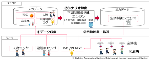 人流や快適性、エネルギーの予測を基にAIが空調運転シナリオを算出するとともに、自動制御を行うGXソリューションを確立します。また、GXソリューションの高度化や早期の社会実装に向け、さまざまなリソースを持つパートナー企業の参画を広く求め、活動を推進します。