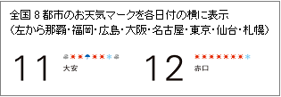 また、季節の中で日々移り変わる空気と上手に付き合うことで、より快適な生活を送っていただきたいと考え、日本気象協会が作成した全国8都市365日の未来のお天気情報を記載しています。