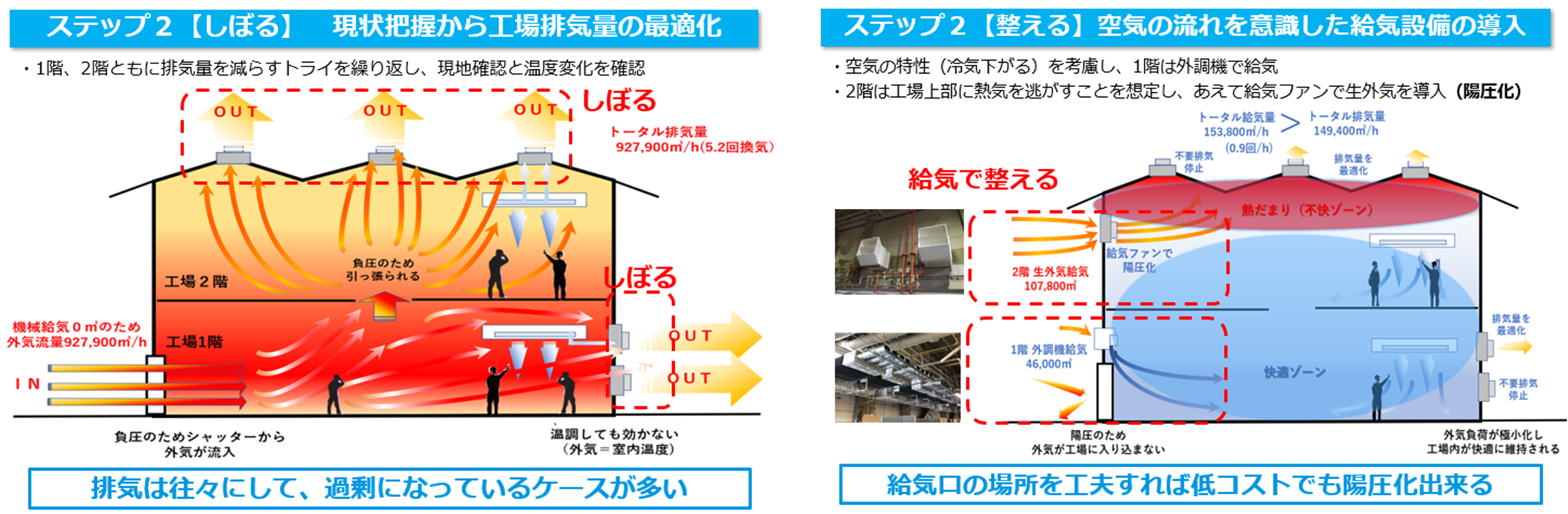 「既存工場の陽圧化及び給排気バランス改善で実現した省エネ取り組み」