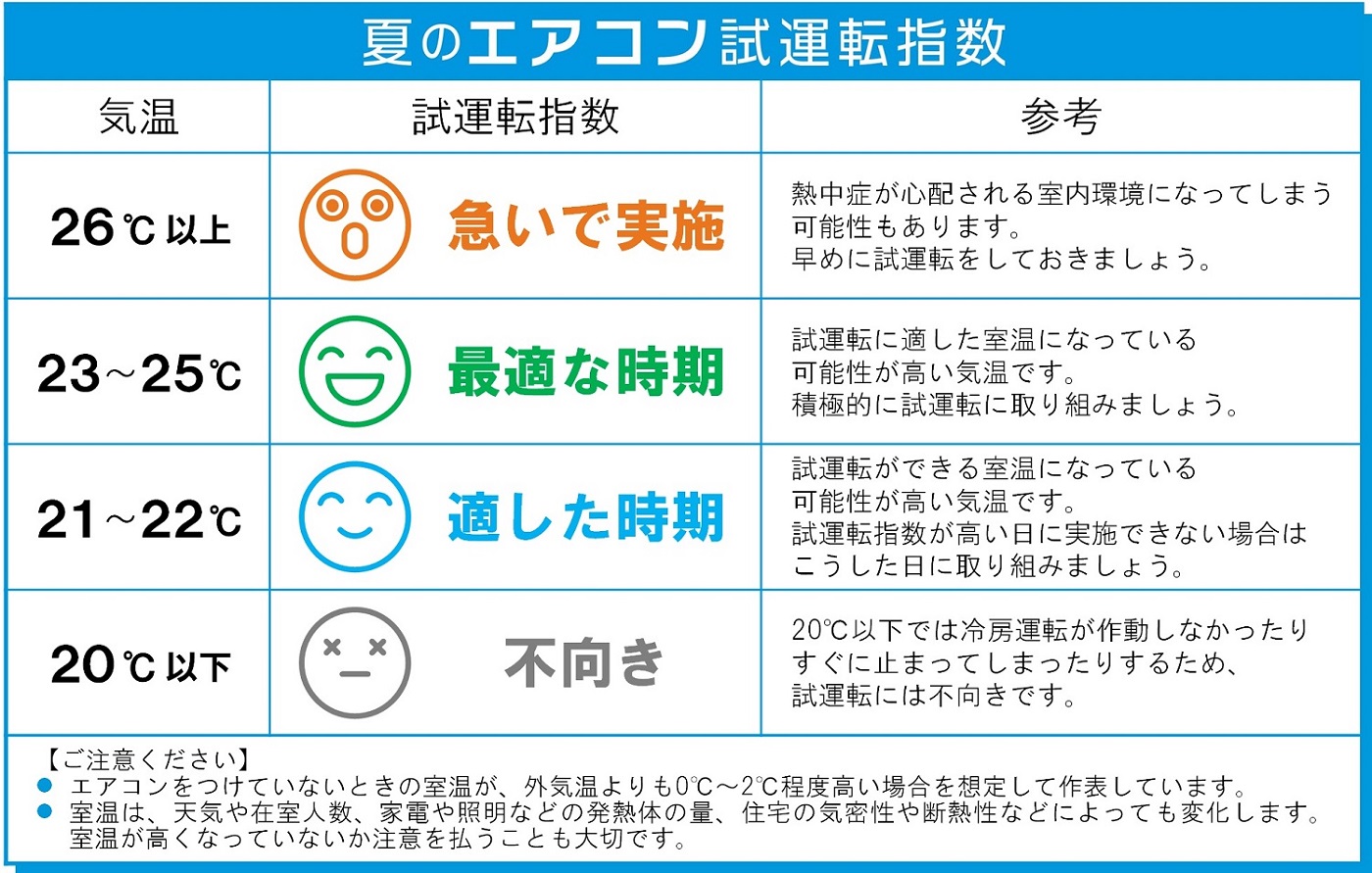 「夏のエアコン試運転指数」を参考に、早めの試運転がおすすめ